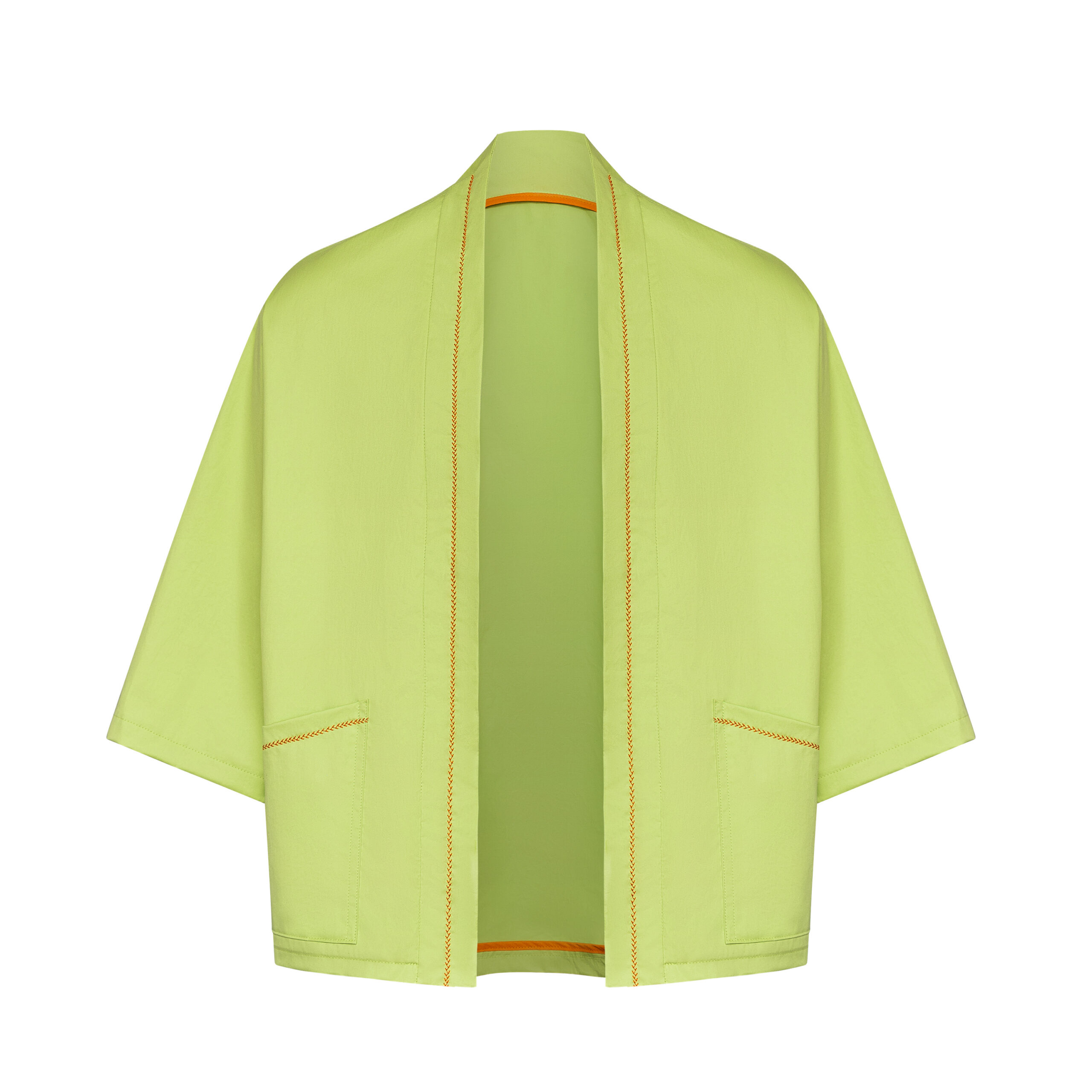 Wide-sleeve, open-front top in soft cotton shell. Airy breathable and effortlessly elegant.